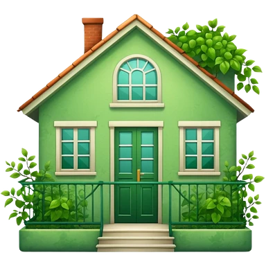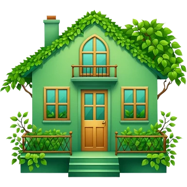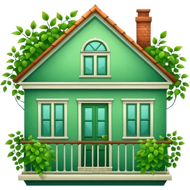 Beautifull Green house with leaves, branches and a balcony emoji