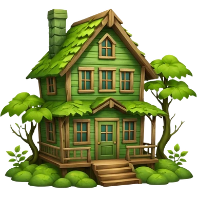 Green Wood house with leaves and branches emoji