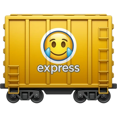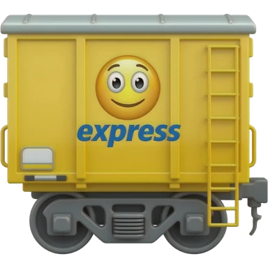 A yellow train wagon with a logo showing emoji express on the side emoji