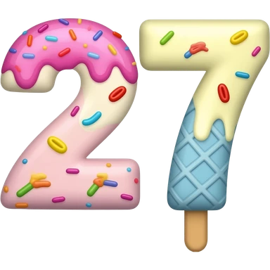 ice cream shaped number 27, 3D cartoon, colorful, white background emoji