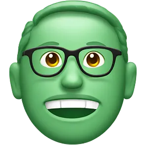 White boy with black hair wearing glasses and wearing tshirt and green cardigan emoji