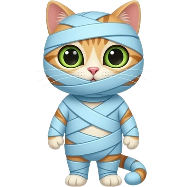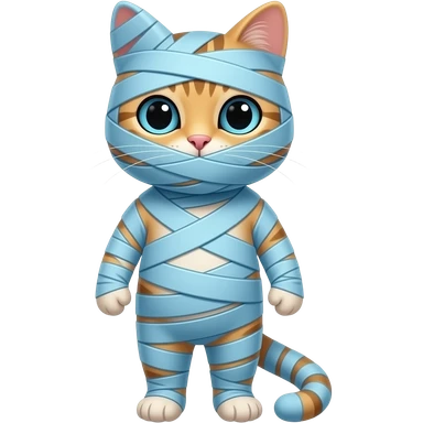 Whole anthro cat wrapping up mummy covered with light blue bandages covered anthro cat emoji