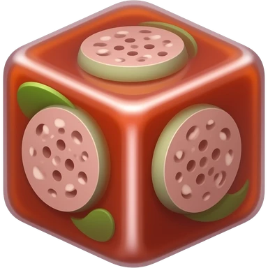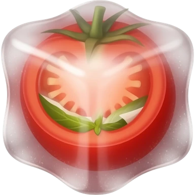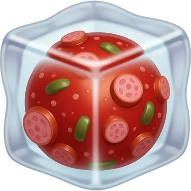 Red Sauce but frozen in a cube. Blend the Cube with the red sauce. Add some small green and sausage slices. The ice cube should be the sauce and there should be no ceramic. Get the outwards of the icecube to match the color of the inner sauce content. Red toned emoji