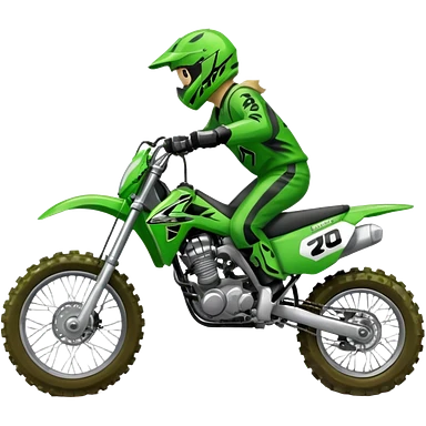 dirtbike rider in green gear thinking about his answer to a question emoji