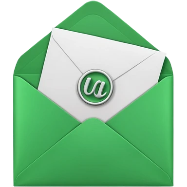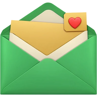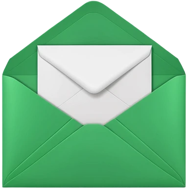 3D minimal open envelope with paper sliding out, matte finish, deep green (#0B3D2C) envelope, cream (#F5F5DC) paper, subtle gold (#C9B037) edge, Apple style, ultra clean, soft shadow, transparent background emoji