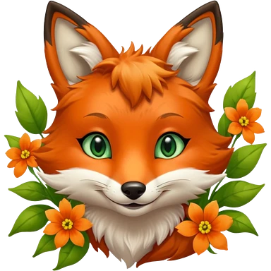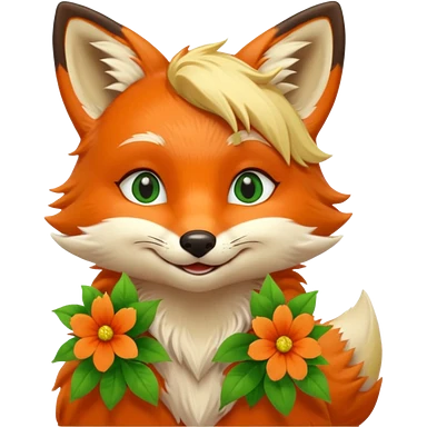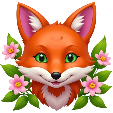 Green Eyed Fox with flowers emoji | AI Emoji Generator