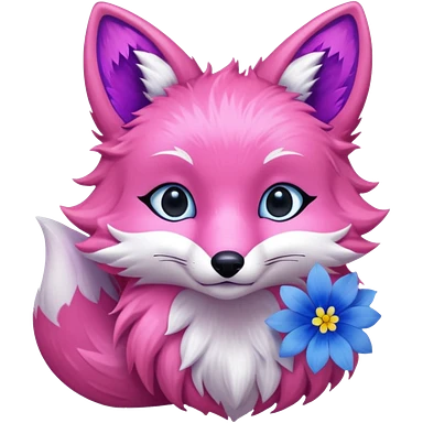 Pink Fox with blue flowers emoji