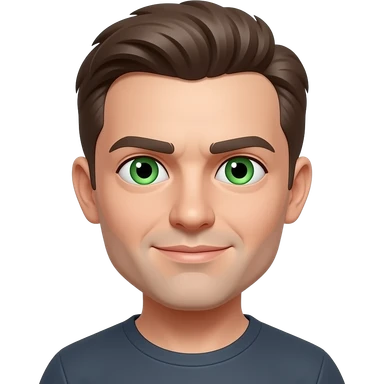 green eyes, dark short hair, muscular shoulders, wide cross, gold chain, big lips big nose big eyes, masculine good looking, dark beard, muscular strong looking emoji