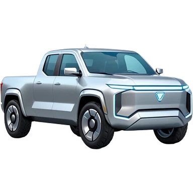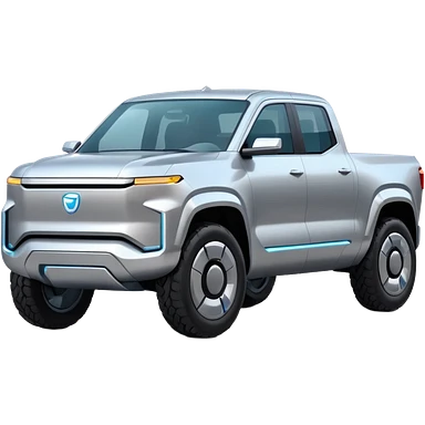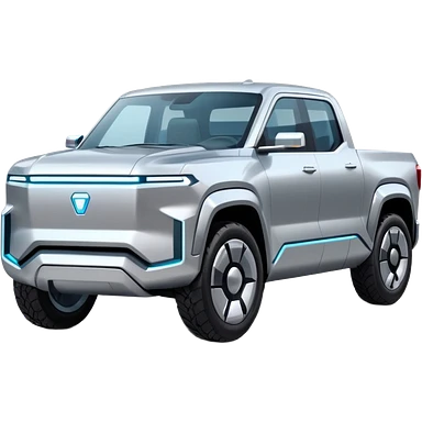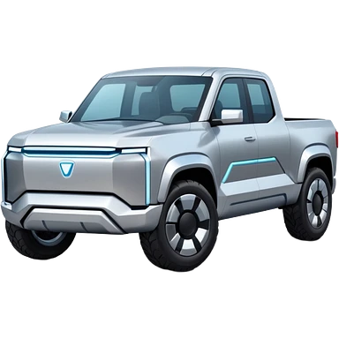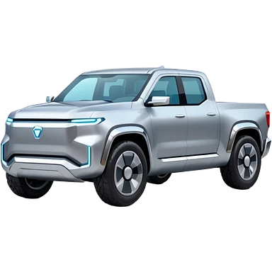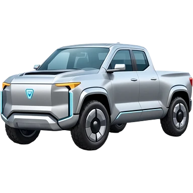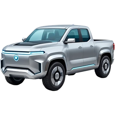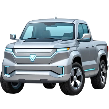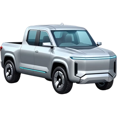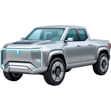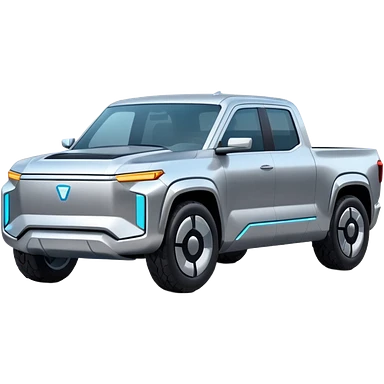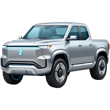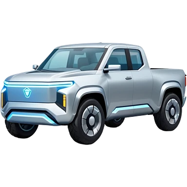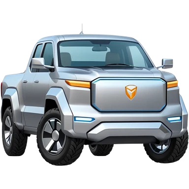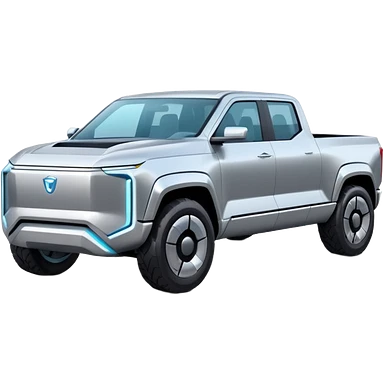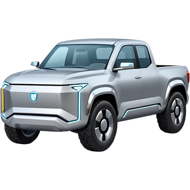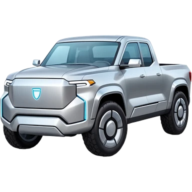 A futuristic electric pickup truck emoji, silver chrome body, angular cyber design, smooth metallic panels, subtle reflections, minimalistic proportions, iOS emoji style, centered composition, clean white background, soft lighting emoji