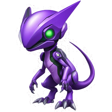 a purple-green- Genesect-Raptor-Fakémon—hybrid with a futuristic visor-helmet full body emoji