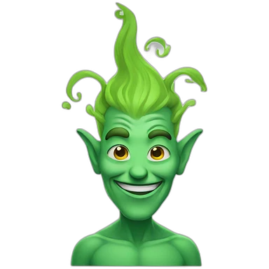 green genie coming out of a genie lamp, environmentally friendly, smoke emoji