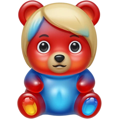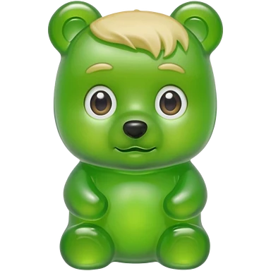 green gummy bear with eyes and blond hair only head emoji | AI Emoji Generator