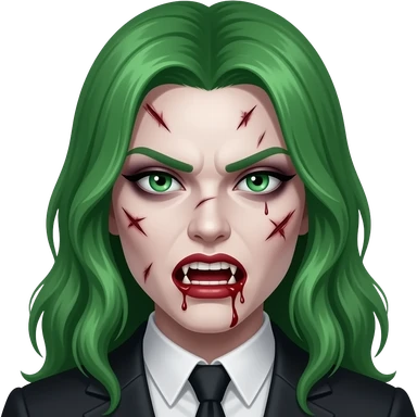 green hair angry women Vampire , scratch in face, blood teeth emoji