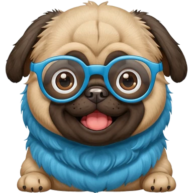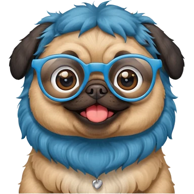 long blue haired baby pug wearing glassess very happy emoji