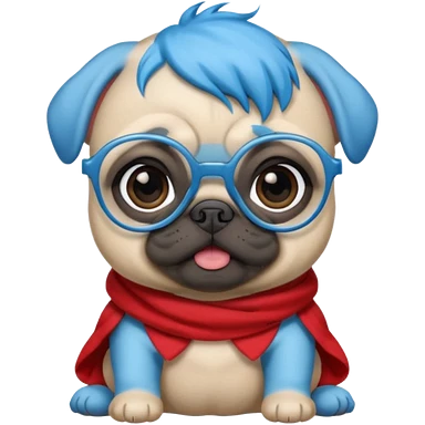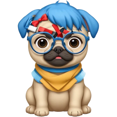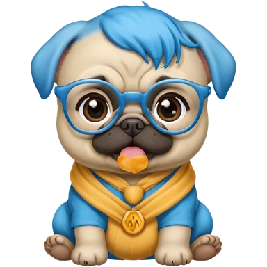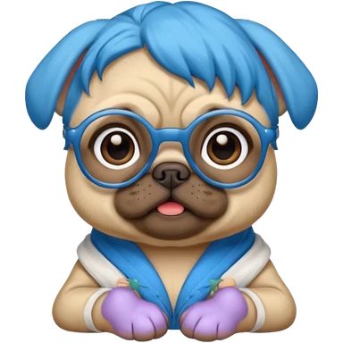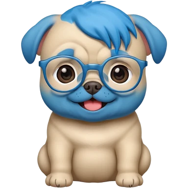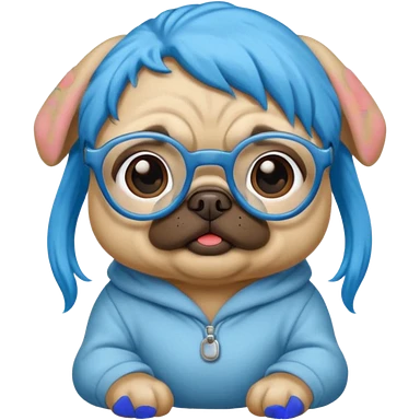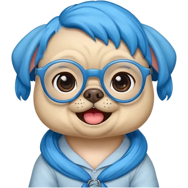 blue haired baby pug wearing glassess emoji