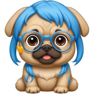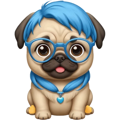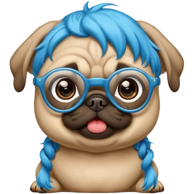 long blue haired baby pug wearing glassess emoji