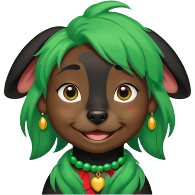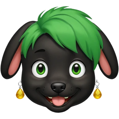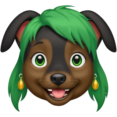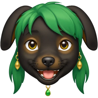 green haired black dog with earring and ha emoji