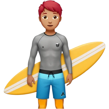 red haired asian surfer with surfboard emoji