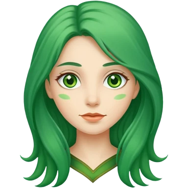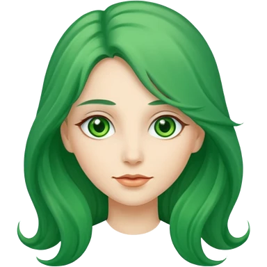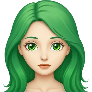 Black haired woman, green eyes, black lipstick, white skin, black t shirt, sharp face, long hair emoji
