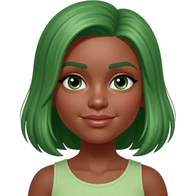 dark skin green hairs girl emoji