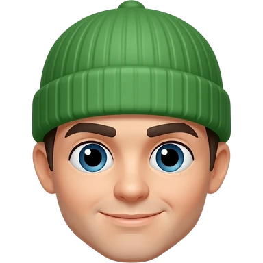 baseball card character. Blonde male. Short hair with glasses. Dark green uniform with hat. Blue eyes and a cobra snake logo on the hat emoji