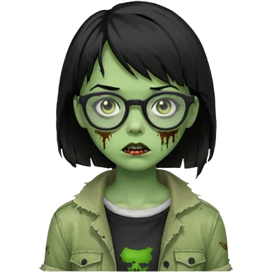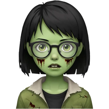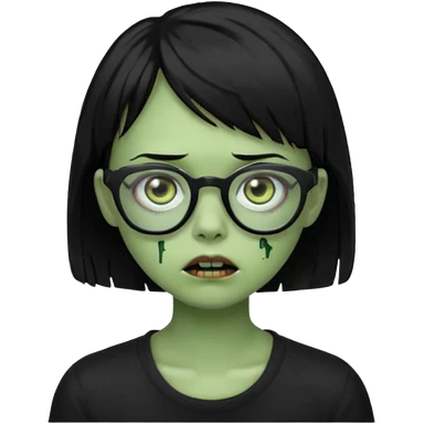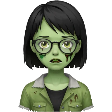 Green zombie girl with black short hair and side bangs in glasses emoji