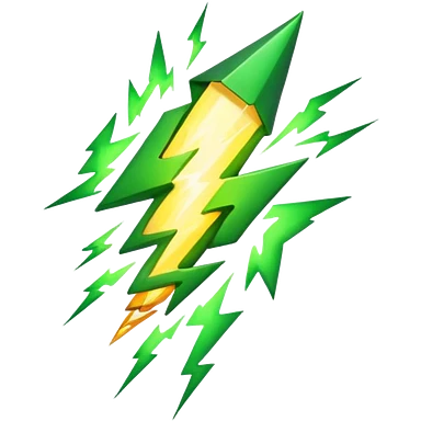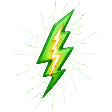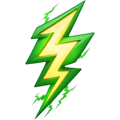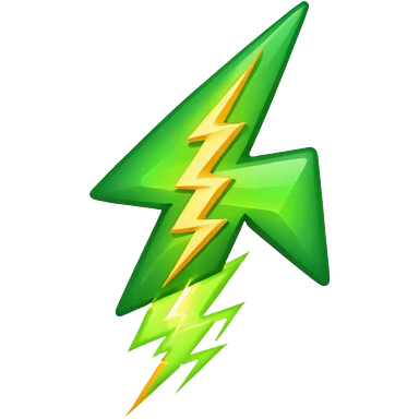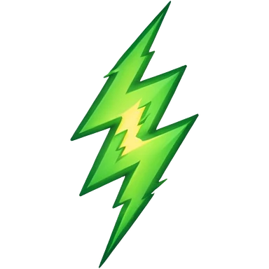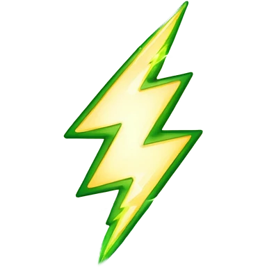 A single neon green lightning bolt emoji, glossy and smooth, cartoonish, vibrant neon green color, high detail, simple and cute design, isolated on white background, centered composition emoji