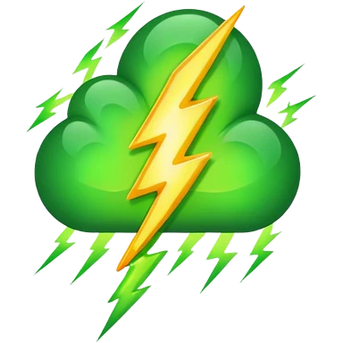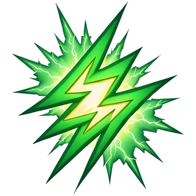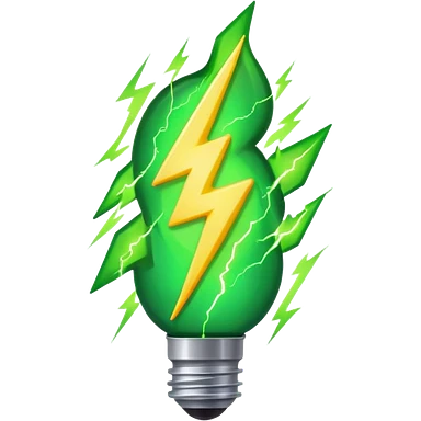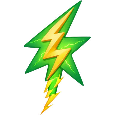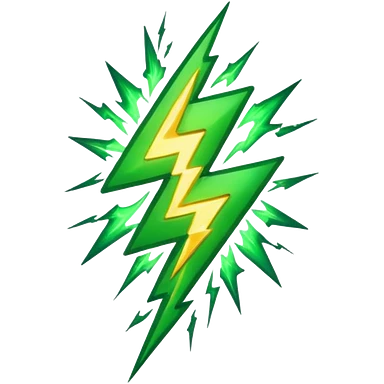 A single neon green lightning bolt emoji, glossy and smooth, vibrant neon green color, high detail, simple and cute design emoji