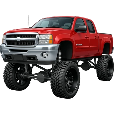 Make a red 08 Silverado jacked up on wide black rims emoji