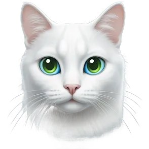 white cat with one green eye and one blue eye, wearing a princess crown emoji