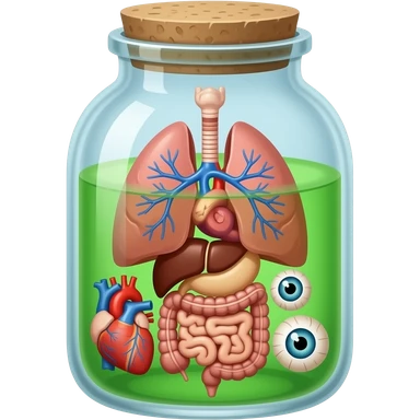 lungs heart liver stomach intestines brain eyeballs in a jar green liquid emoji