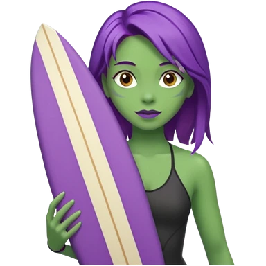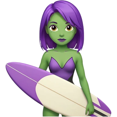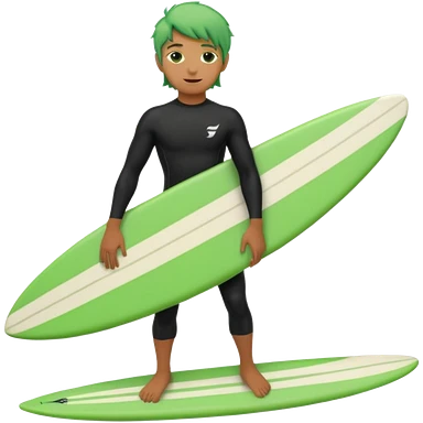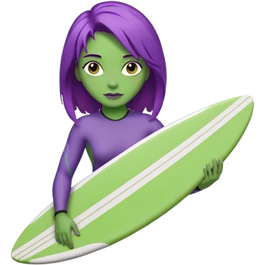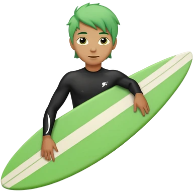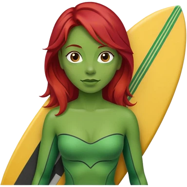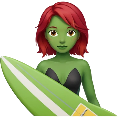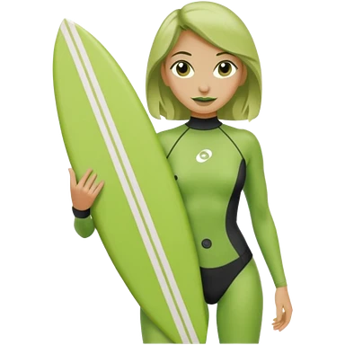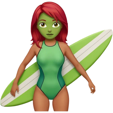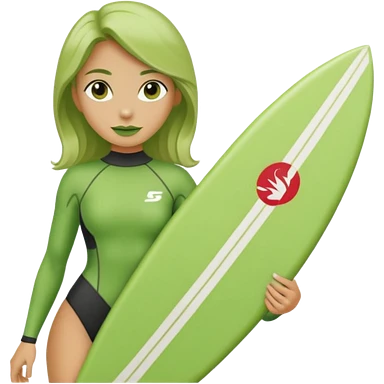 dark brown long hair white girl surfing green red surf board in ocean emoji