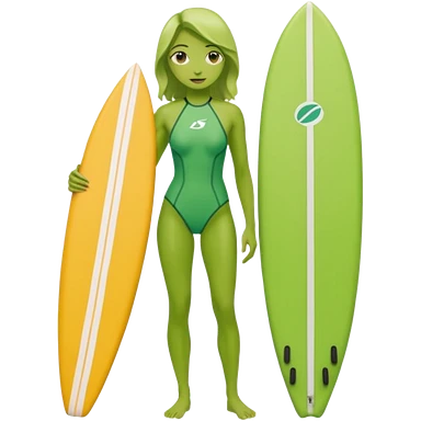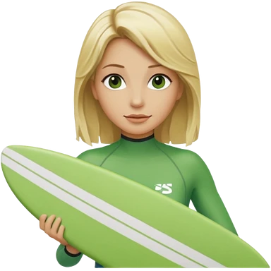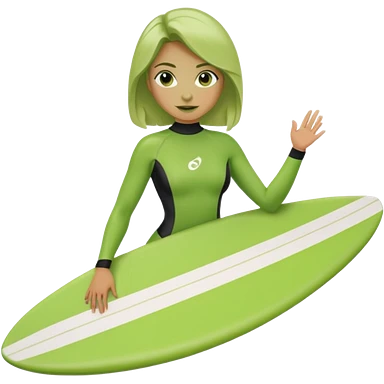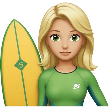 brown hair white girl surfing green yellow surf board in ocean emoji