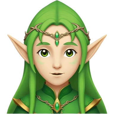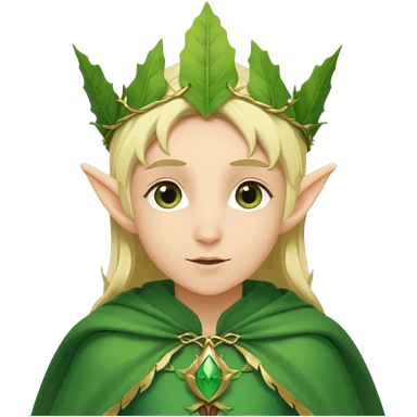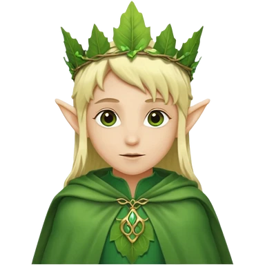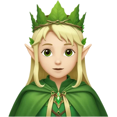 Forest Elf – elegant green skinned elf with leaf crown and cloak, blonde hair emoji