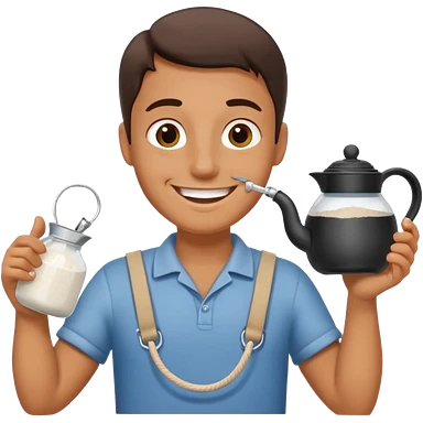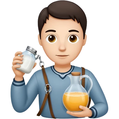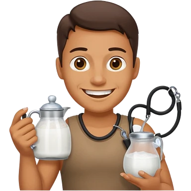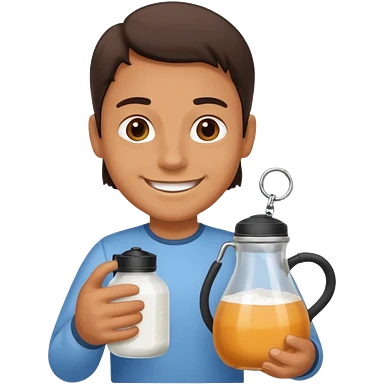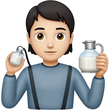 Boy with brown hair and blue eyes holding a jug of milk emoji