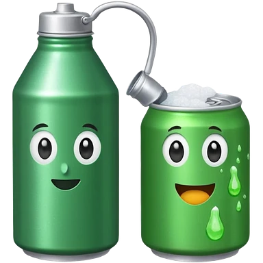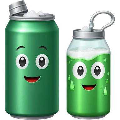 Green Soda can on left on leash of Salt Jug on right emoji | AI Emoji Generator