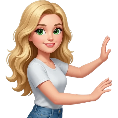 Make an animated emoji of female with blonde hair and green eyes touching walls. So they touch the right side of the wall with their right hand and touch the left side with their left hand emoji