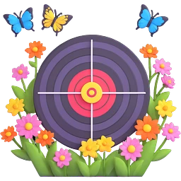 A 3D bullseye target with spring pastel colors of yellow, pink, mint green, and light blue emoji