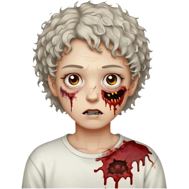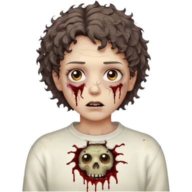 zombie with short curly hair and brown eyes wearing a white sweat emoji
