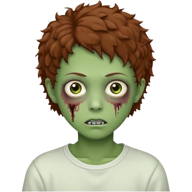 green teen zombie with brown short curly hair and brown eyes wearing a white sweat emoji