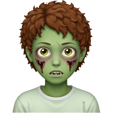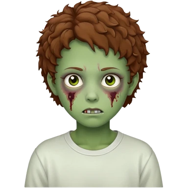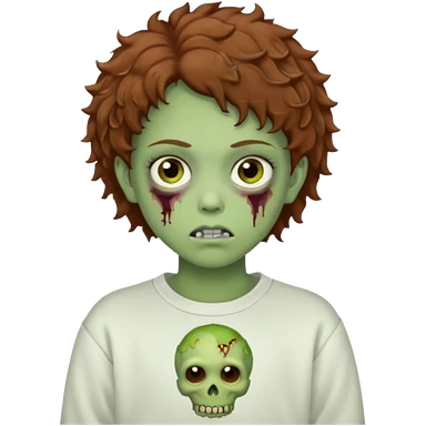 green teen zombie with brown curly hair and brown eyes wearing a white sweat emoji | AI Emoji Generator