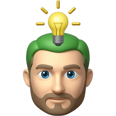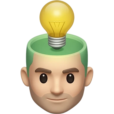 3D isometric face icon, lightbulb glowing above the head. Minimalist professional style, emerald green & gold accents. Soft studio lighting, 8k Octane render, ray-tracing detail. Isolated on white background, premium literary aesthetic --v 6.0 emoji