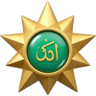 3D isometric Rub el Hizb star medal, emerald center. Minimalist professional style, emerald green & gold accents. Soft studio lighting, 8k Octane render, ray-tracing detail. Isolated on white background, premium literary aesthetic --v 6.0 emoji