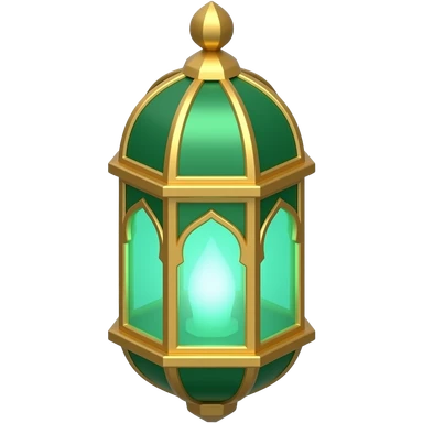 3D isometric Fanous lantern icon, geometric LED glow. Minimalist professional style, emerald green & gold accents. Soft studio lighting, 8k Octane render, ray-tracing detail. Isolated on white background, premium literary aesthetic --v 6.0 emoji