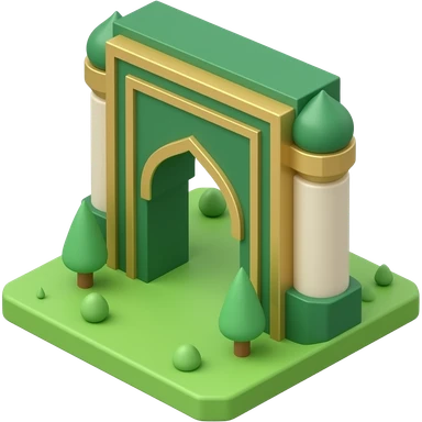 3D isometric Mihrab gateway icon, digital library entrance. Minimalist professional style, emerald green & gold accents. Soft studio lighting, 8k Octane render, ray-tracing detail. Isolated on white background, premium literary aesthetic --v 6.0 emoji