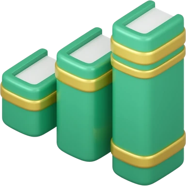 3D isometric bar chart icon, bars shaped like books. Minimalist professional style, emerald green & gold accents. Soft studio lighting, 8k Octane render, ray-tracing detail. Isolated on white background, premium literary aesthetic --v 6.0 emoji