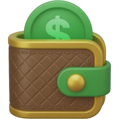 3D isometric leather wallet icon, glowing digital coins. Minimalist professional style, emerald green & gold accents. Soft studio lighting, 8k Octane render, ray-tracing detail. Isolated on white background, premium literary aesthetic --v 6.0 emoji