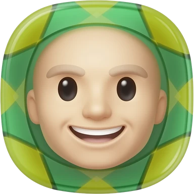 3D isometric face icon, wide joyful smile, welcoming expression. Minimalist professional style, emerald green & gold accents. Soft studio lighting, 8k Octane render, ray-tracing detail. Isolated on white background, premium literary aesthetic --v 6.0 emoji