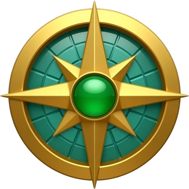 3D isometric navigator's compass icon, ancient gold inlay. Minimalist professional style, emerald green & gold accents. Soft studio lighting, 8k Octane render, ray-tracing detail. Isolated on white background, premium literary aesthetic --v 6.0 emoji