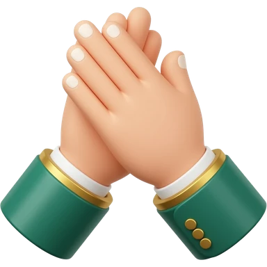 3D isometric clapping hands icon, formal gold-button cuffs. Minimalist professional style, emerald green & gold accents. Soft studio lighting, 8k Octane render, ray-tracing detail. Isolated on white background, premium literary aesthetic --v 6.0 emoji